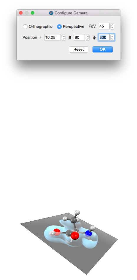 the Display ICamera menu option. By default the camera uses a perspective projection