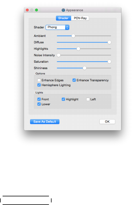 Changes to the various shader options will take immediate e↵ect and can be saved as the