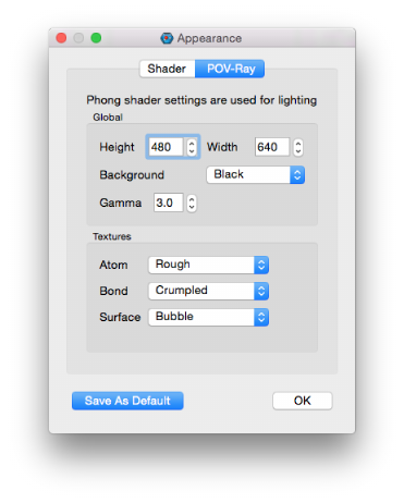 Figure 5.4: Appearance dialog showing Options for POV-Ray scene files.