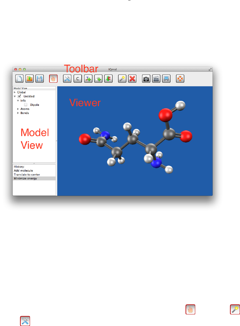 The main IQmol window is shown in Fig. 1.1 and comprises the following main parts: