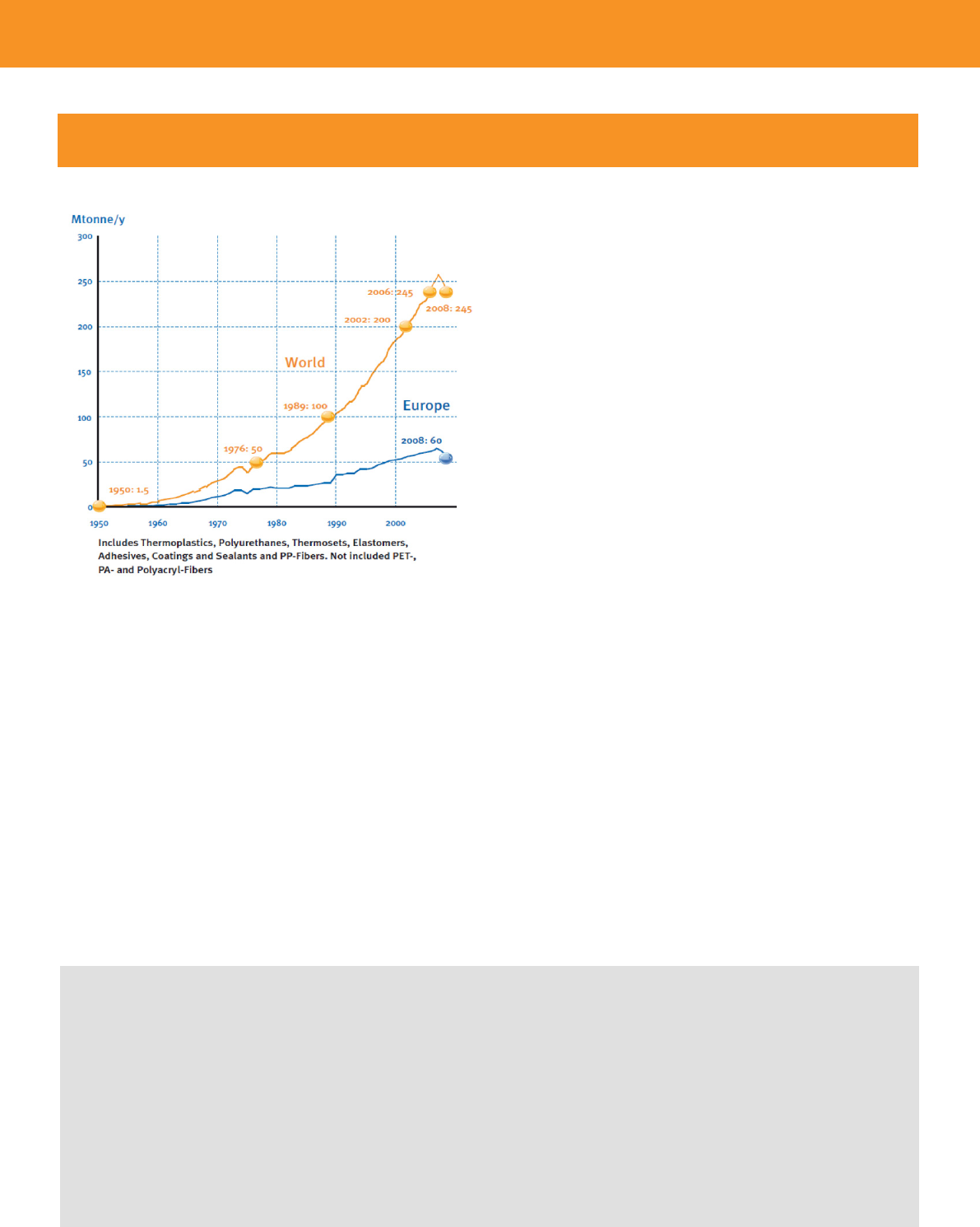 Figure 1: World Plastics Production 1950-2008. The Compelling Facts about Plastic, PlasticsEurope (2009), p33.