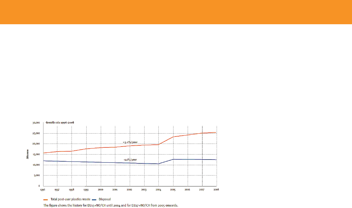 Figure 2: Continued decoupling of plastic waste and landll. The Compelling Facts about Plastic, PlasticsEurope (2009), p11.