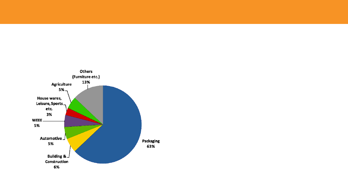 Figure 4: Proportion of post-consumer waste in EU-27, Norway and Switzerland according to function, 2008. From Plastic Waste in the Environment