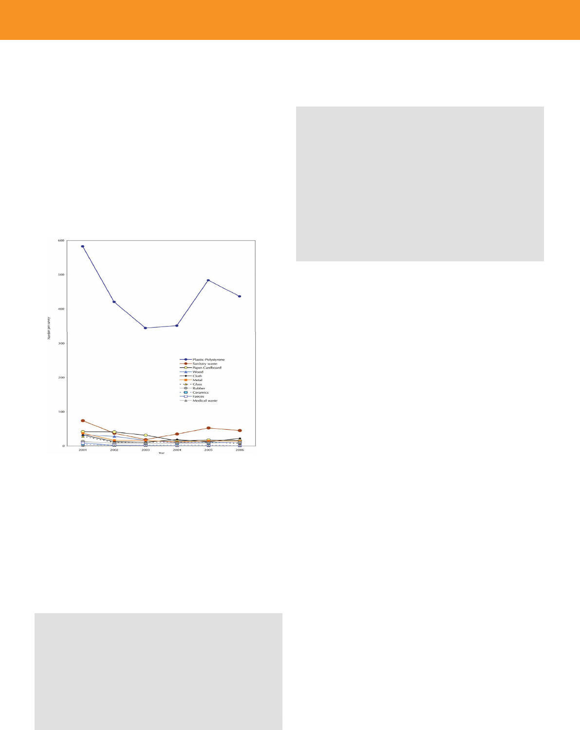 6. Changes in composition of marine items found on beaches