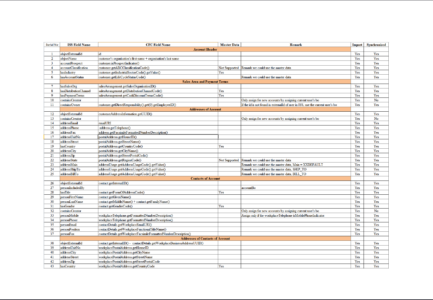 Table 8 ISS and CPQ Account Data Mapping for Import Process