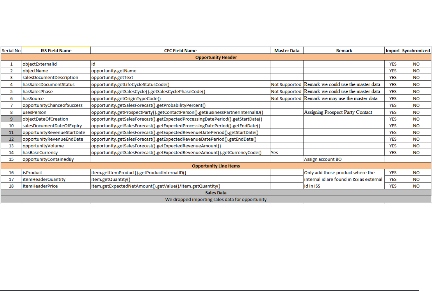 Table 9 ISS and CPQ Opportunity Data Mapping for Import Process