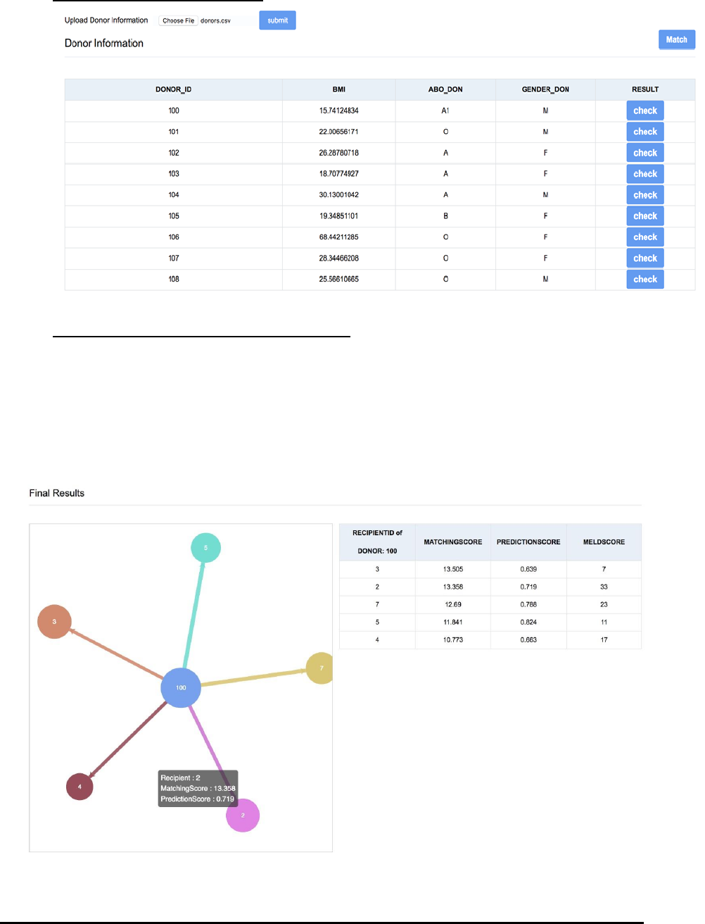 When the user clicks on ‘check’ for each donor, the page displays top 5 recipients for the
