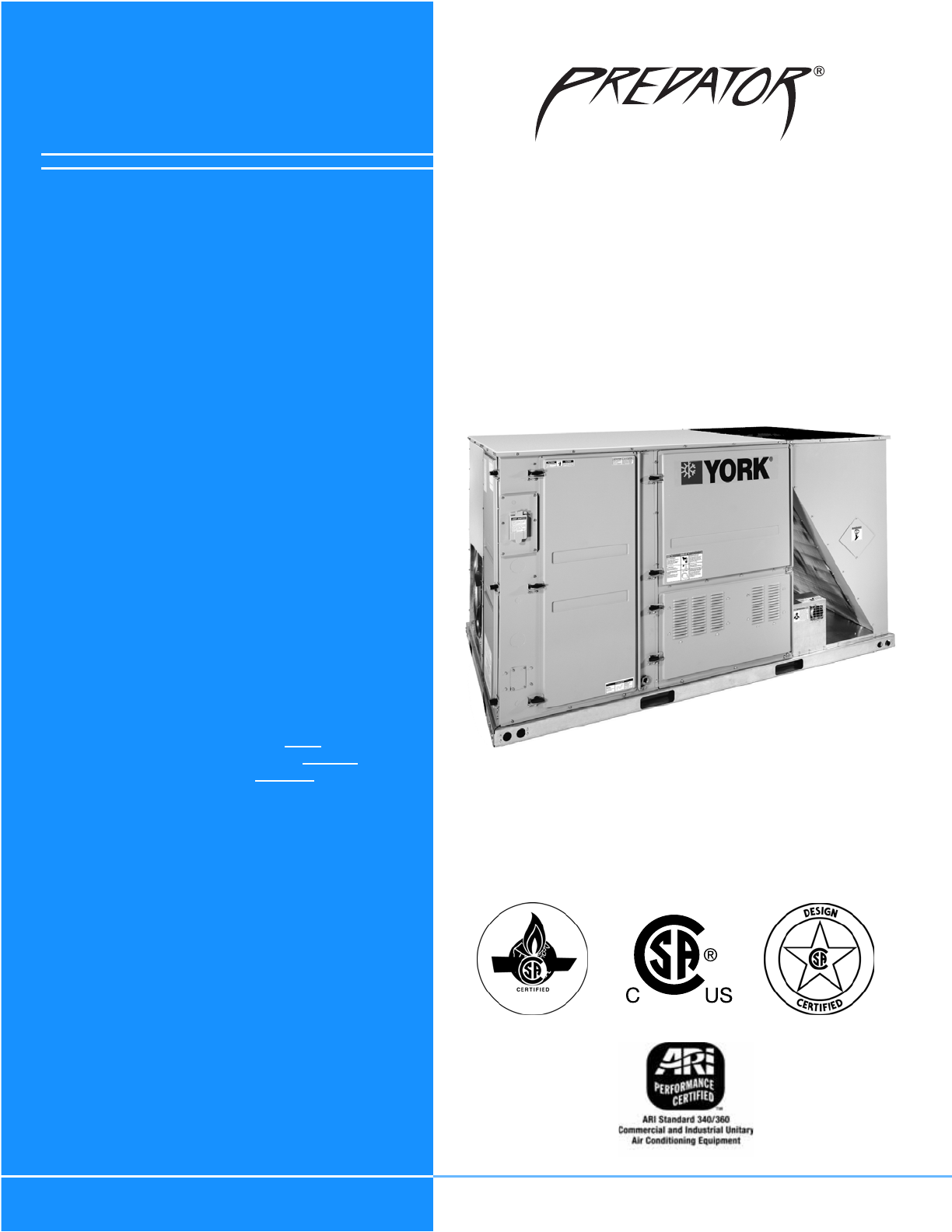 Y IM Single Package Air Conditioners And Gas/Elelctric Units, DM/DH078 150, 6.5 12.5 Ton, 9 11.5 EER PREDATOR DM090 Inst DH078 0806