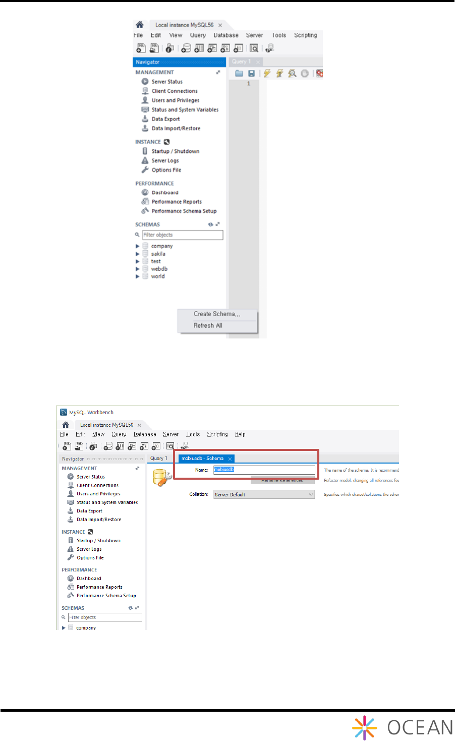 위의 그림처럼 SCHEMAS 빈 곳에서 마우스 오른쪽 버튼을 클릭하면 뜨는 메뉴에서