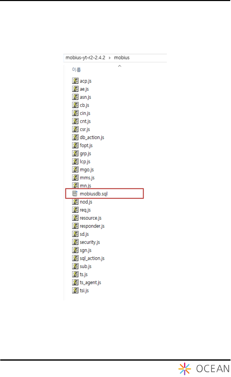 Import할 Mobius DB 테이블에 대한 sql 파일은 앞서 다운로드한 Mobius가 설치된 폴더