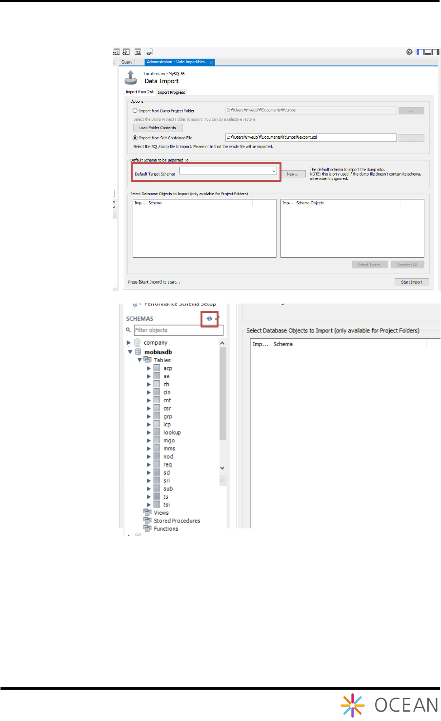 는 mobiusdb.sql 파일을 선택한다. 이후 Default Target Schema 로 앞서 만든 mobiusdb