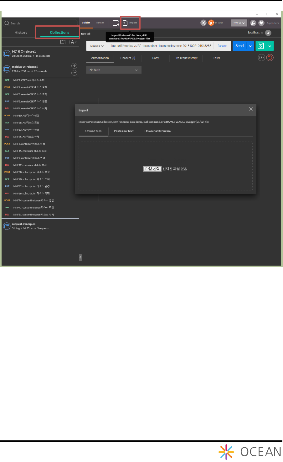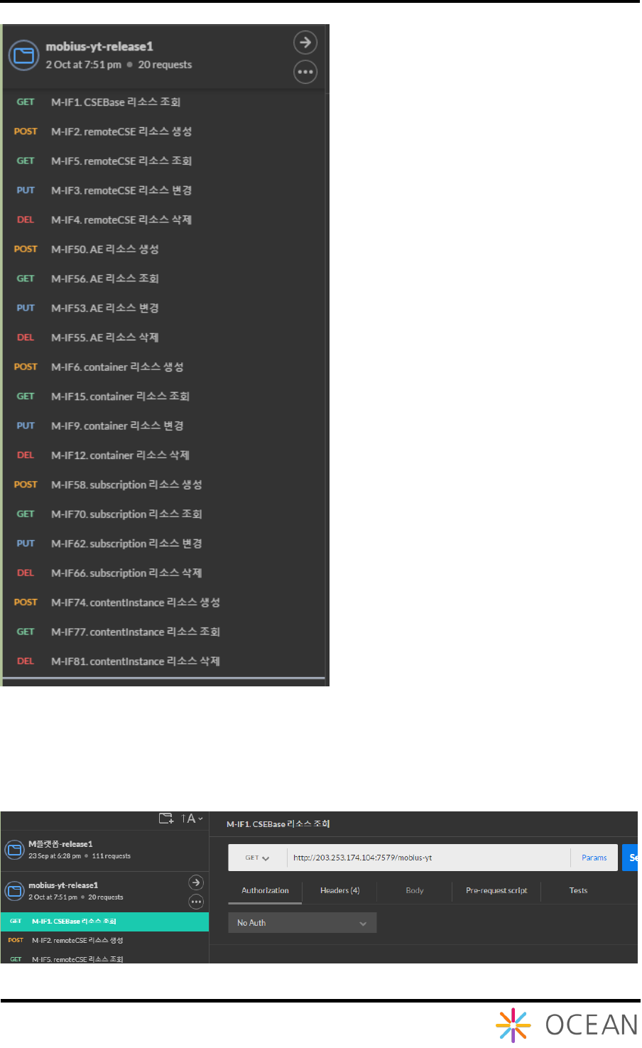 Postman을 설치하면 아래와 같이 실행이 된다. Mobius 테스트를 위해 OCEAN에서 미리