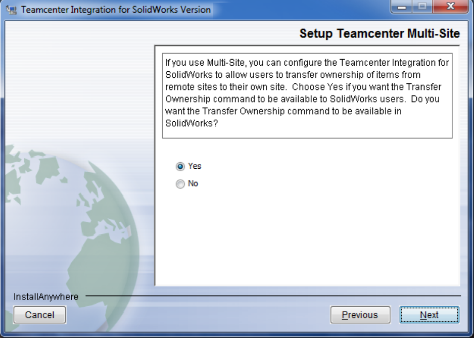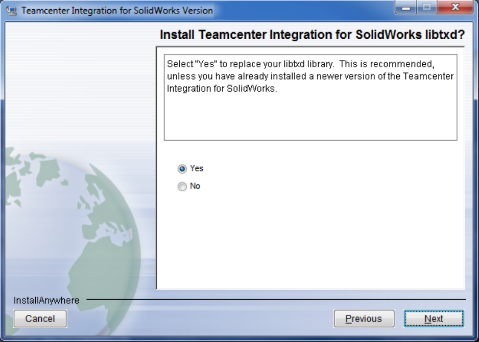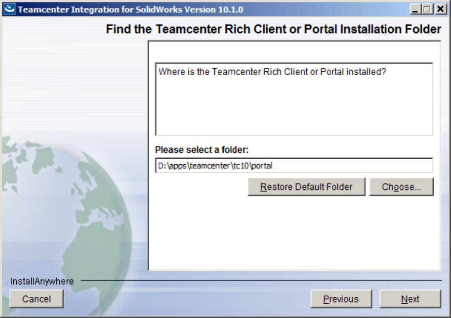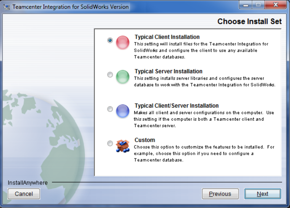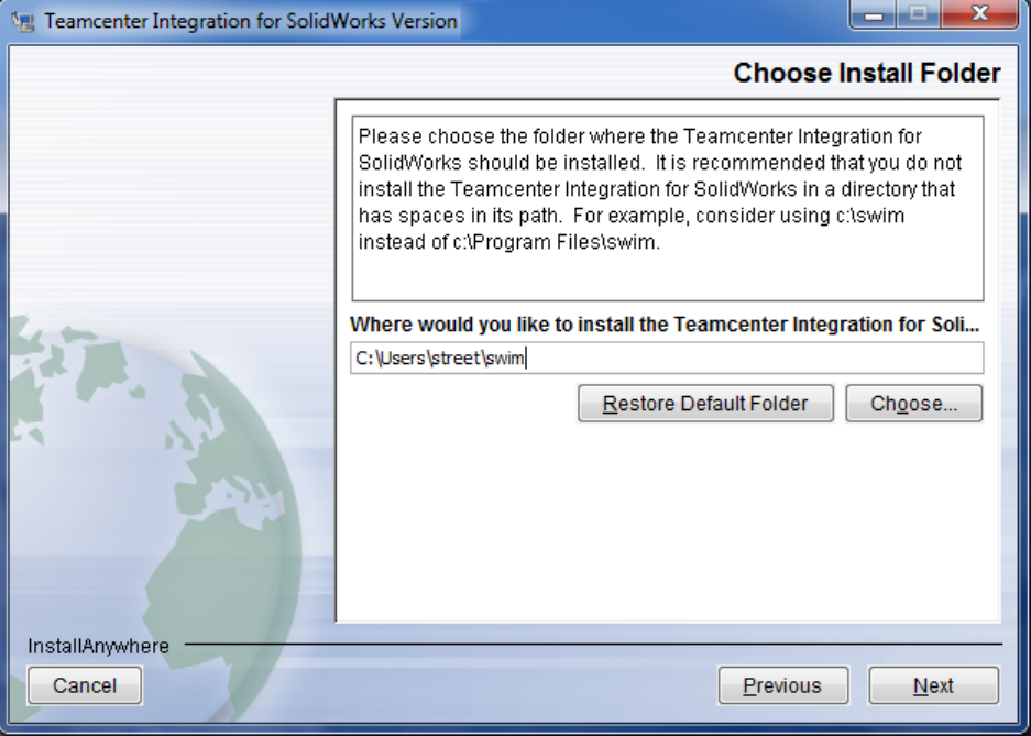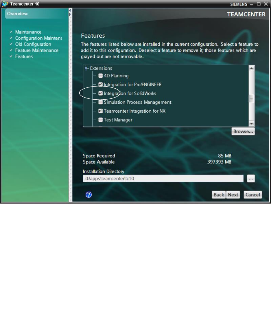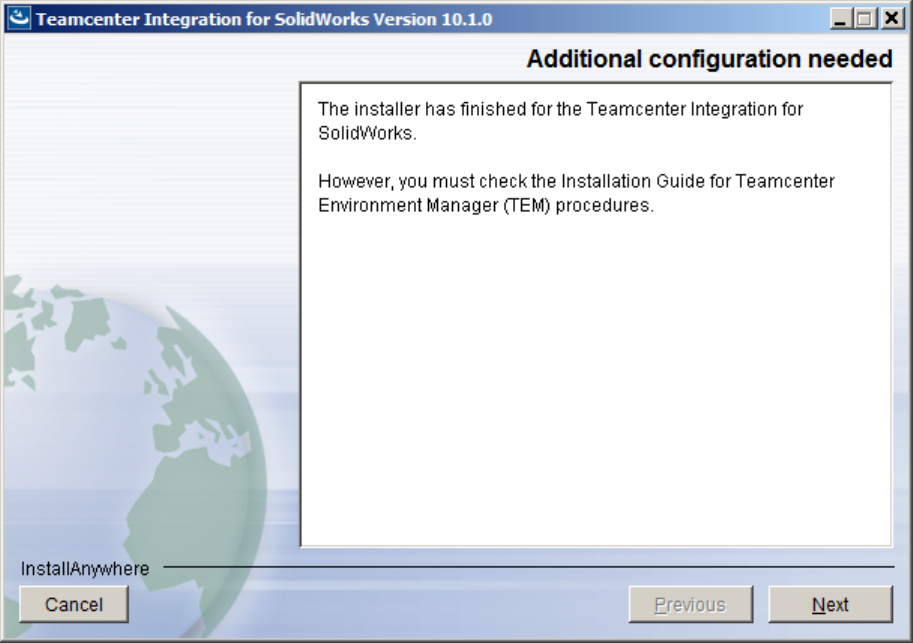 If you receive the message, “Installation of the Teamcenter Integration for SolidWorks is