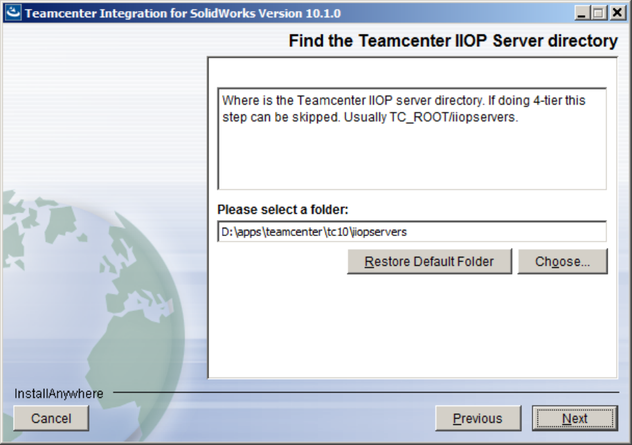 - Select the Teamcenter IIOP directory