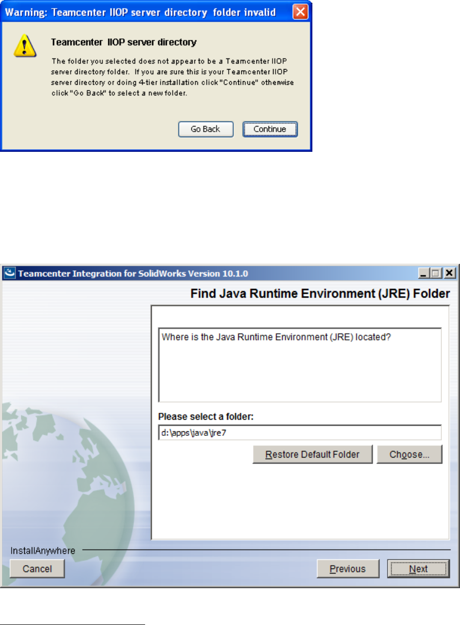 the installation directory for the Teamcenter Integration for SolidWorks. The same Java