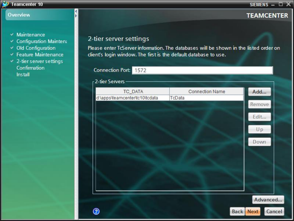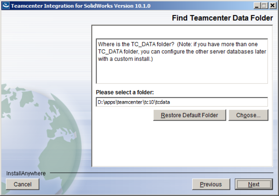 - Select the Teamcenter Data Directory
