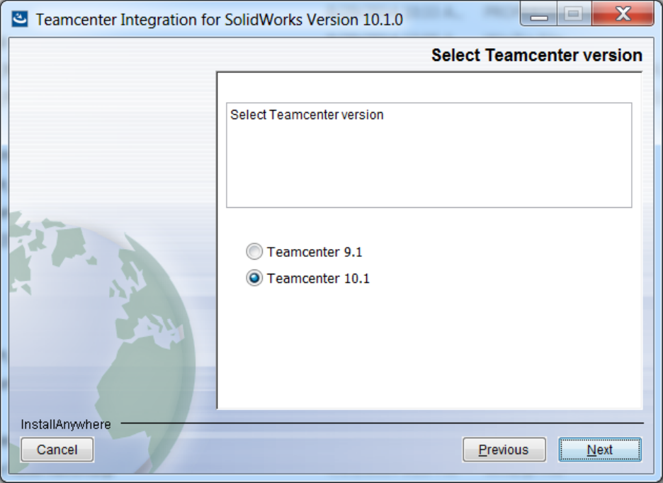 - Select the Teamcenter version