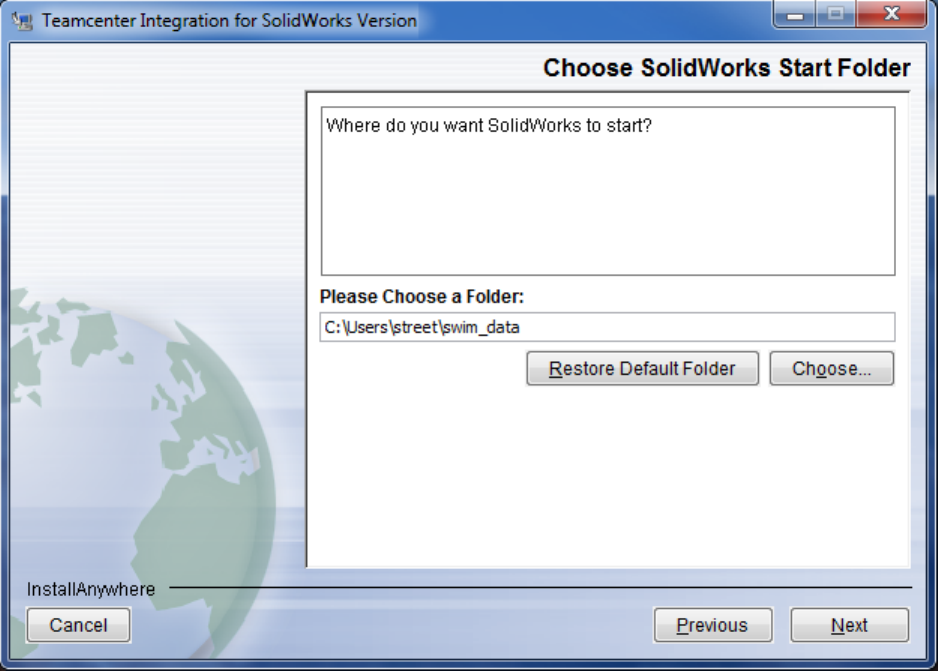 - Select the SolidWorks Start location
