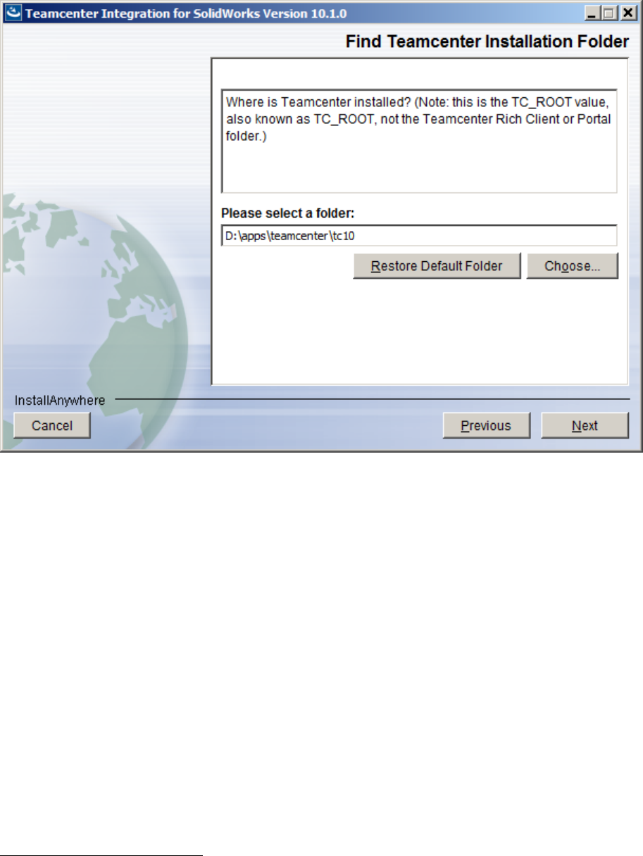 - Select the Teamcenter Root location
