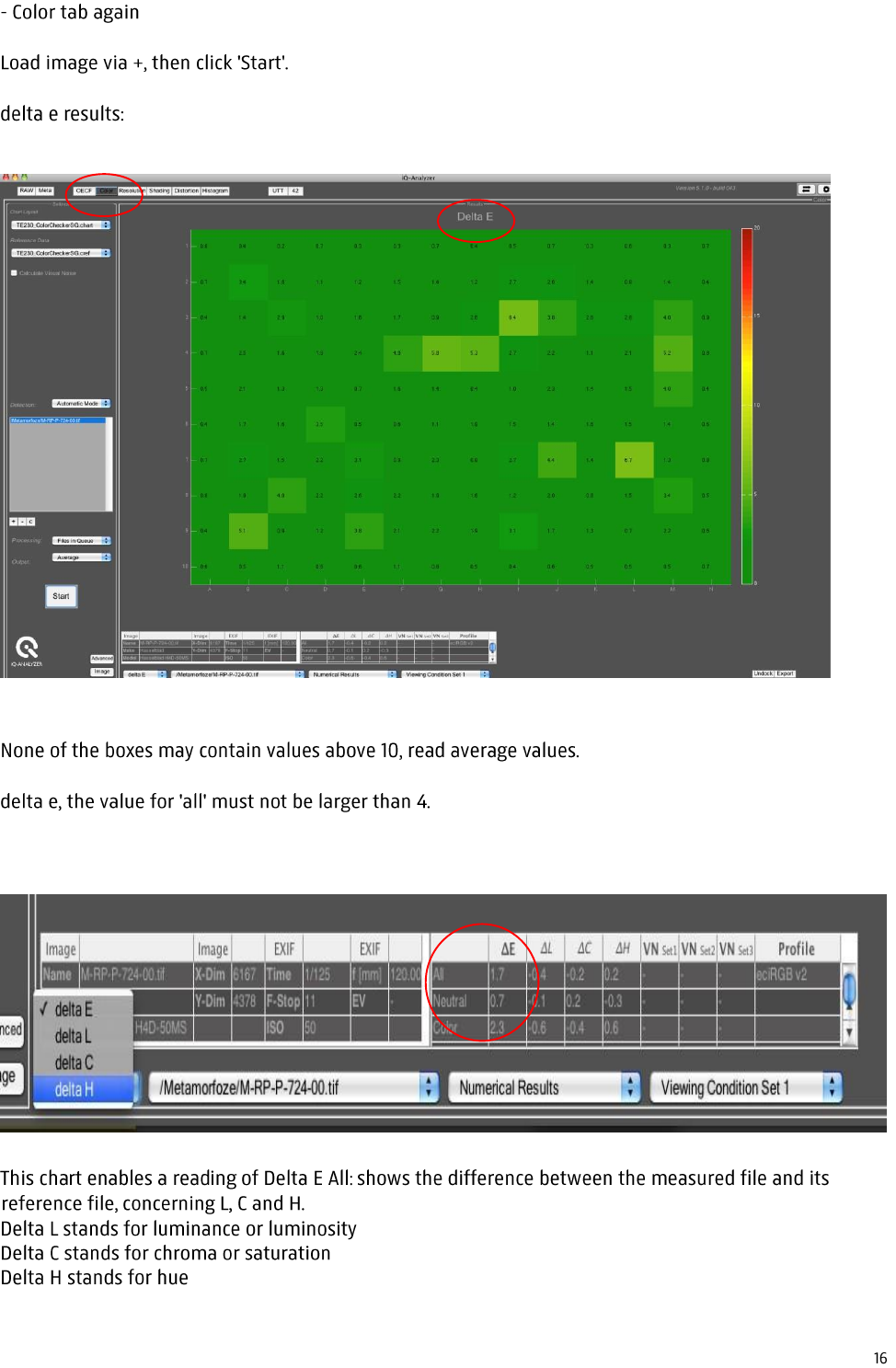 Check the file in the iQ Color analyzer, concerning delta E
