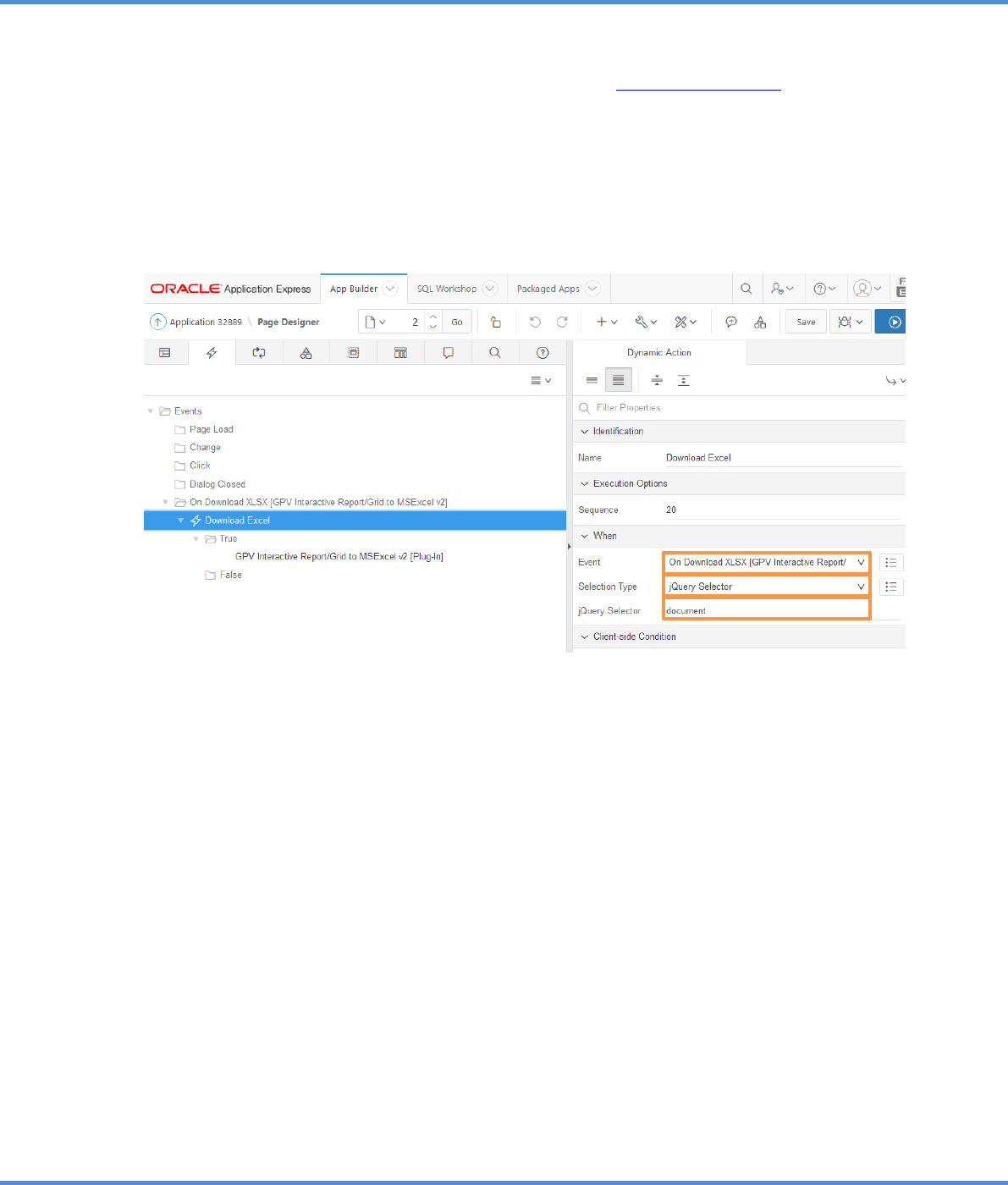 1. Create a new Dynamic Action on Event “On Download XLSX[GPV Interactive Report/Grid