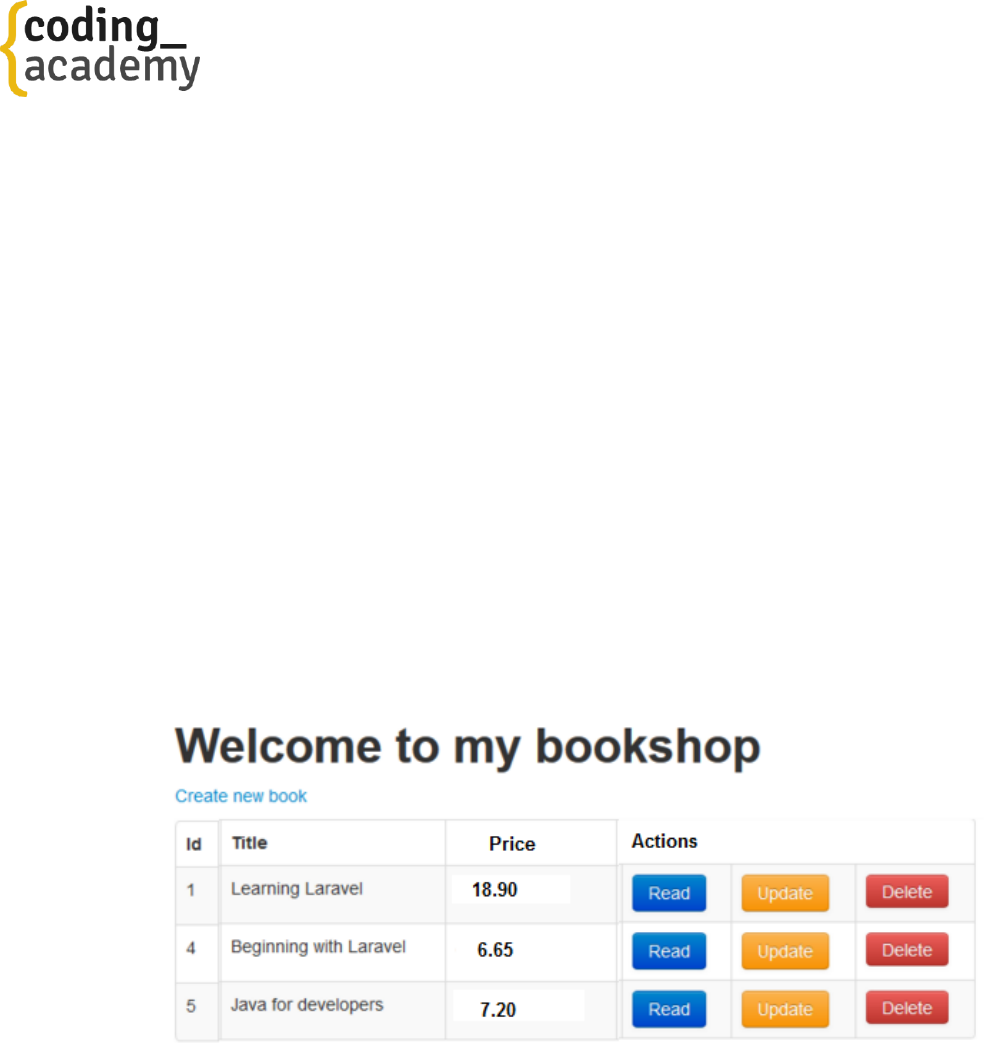 2. Create your Model and show the books in a table. We will use