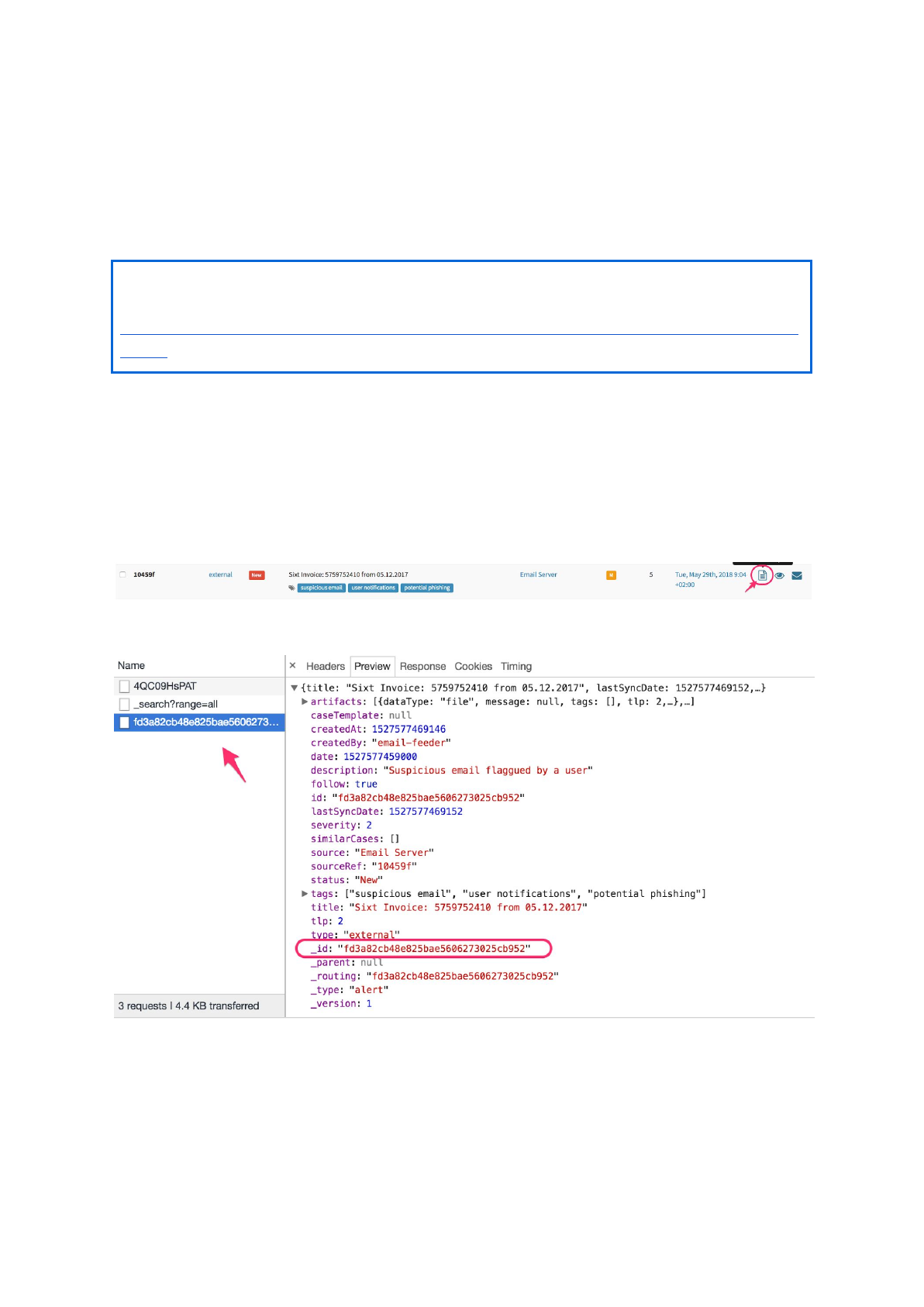 you are ready, execute the alert feeder. The alert should show up in TheHive. Preview it,