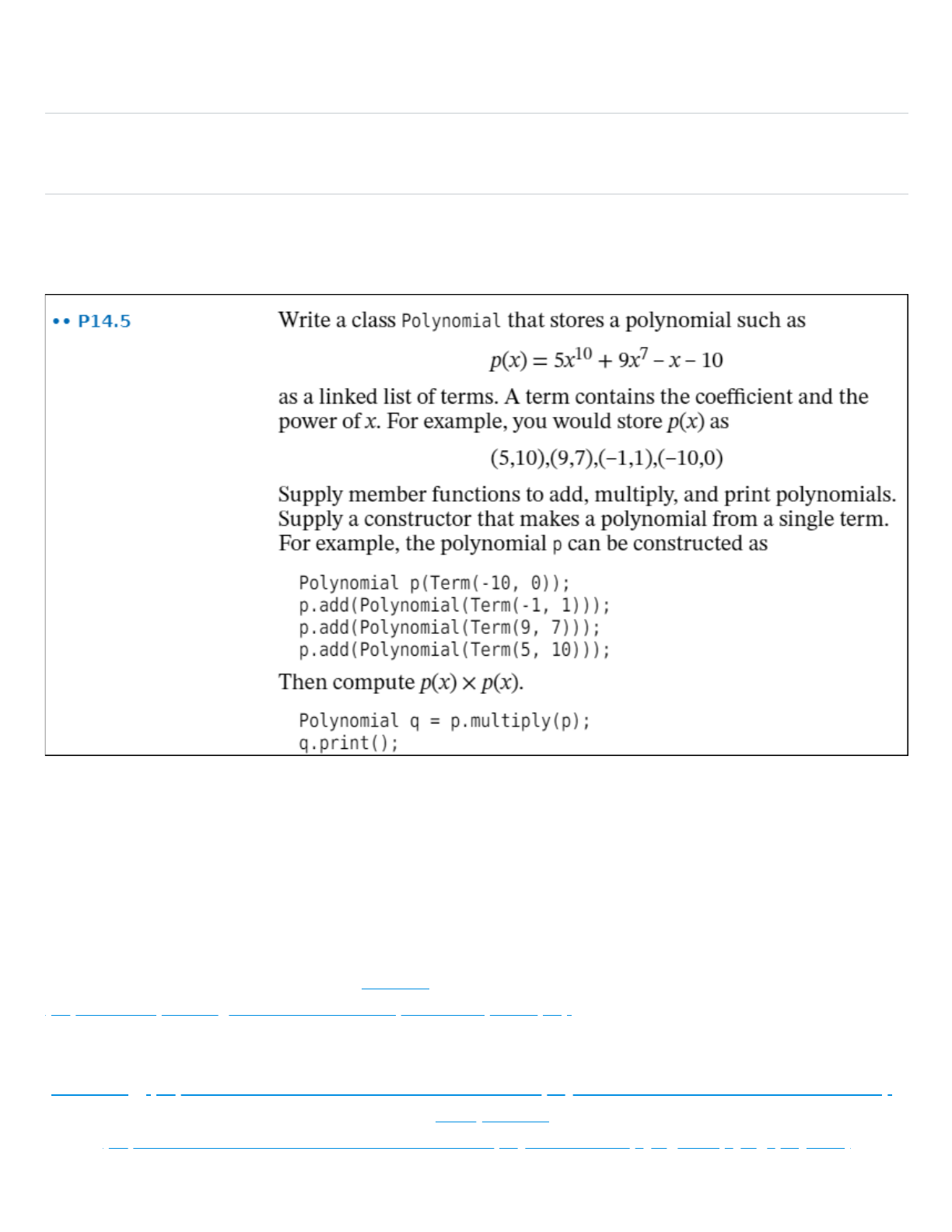 term plus a pointer to the next node of the linked list. The Polynomial class then encapsulates the list itself by