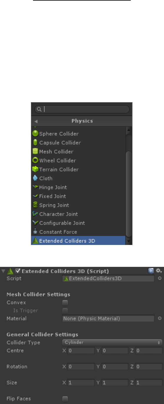 shapes that go beyond Unity's built in sphere, cube and capsule colliders. Each collider is added as a