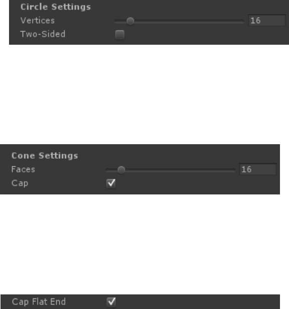 • Circle/Half Circle – a flat (half) circle, made from a specified number of vertices.