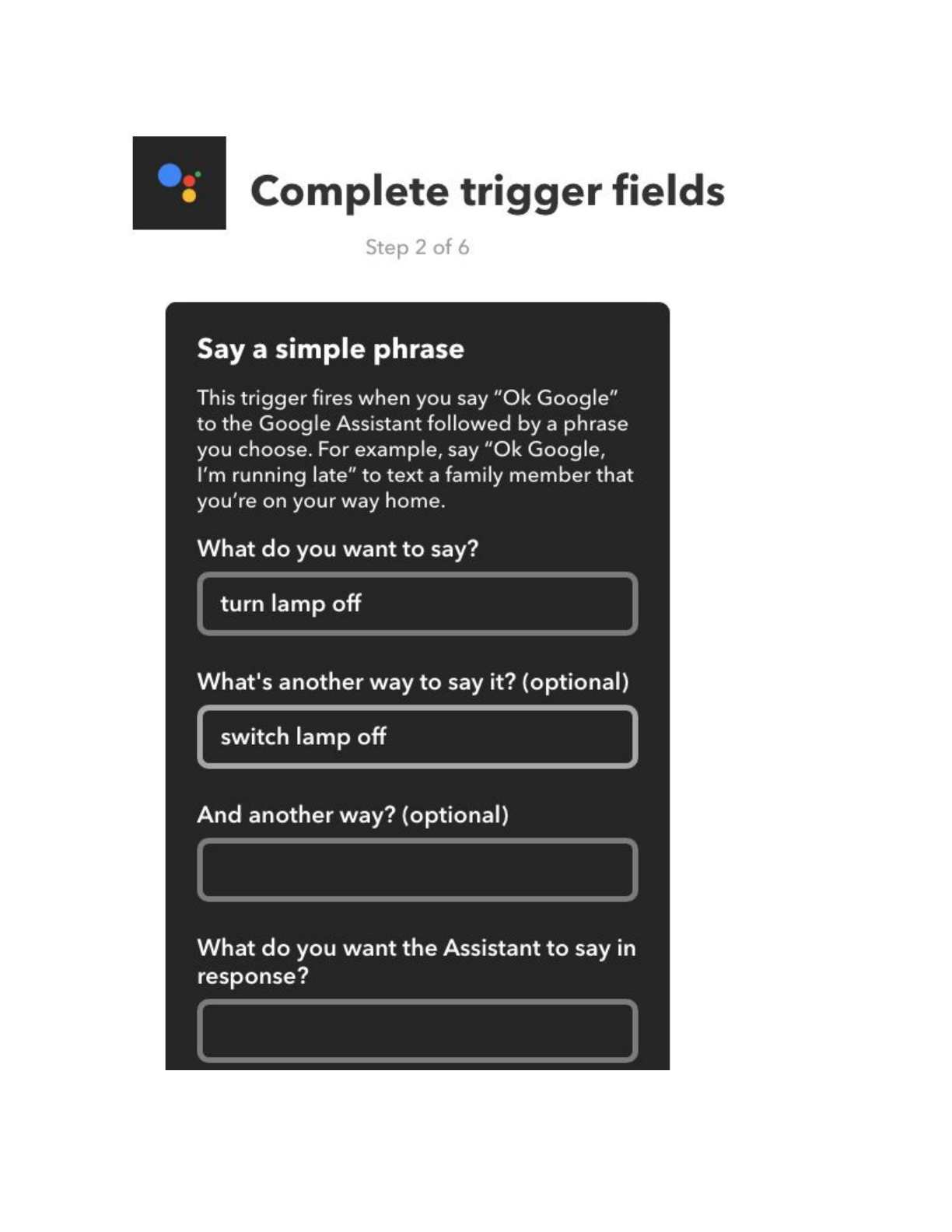 Google Assistant’s response, and the language. For my activation phrases, I chose “Turn