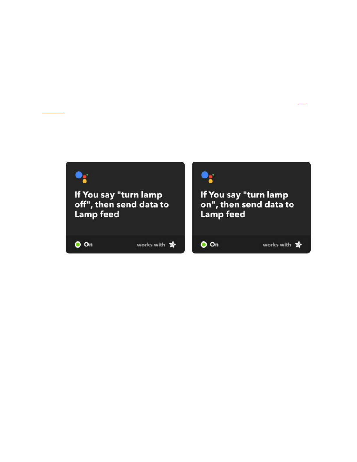 Google Assistant accounts. Allow the accounts to be linked, then turn on the second applet