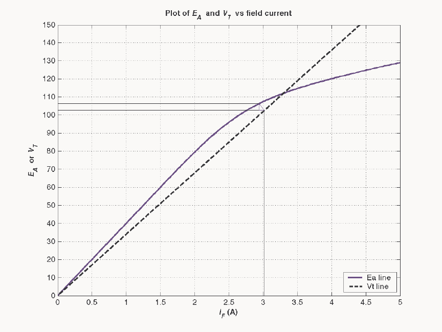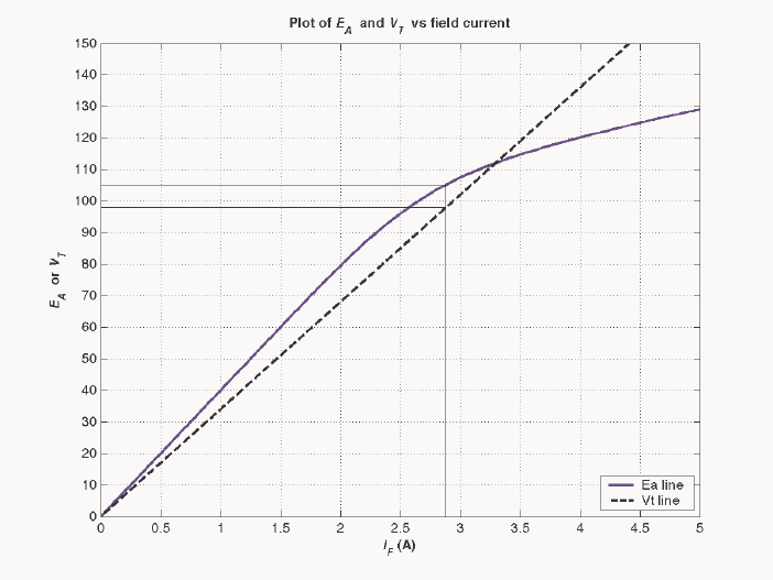connected to a dc power system supplying a constant 240 V, and the ac machine is