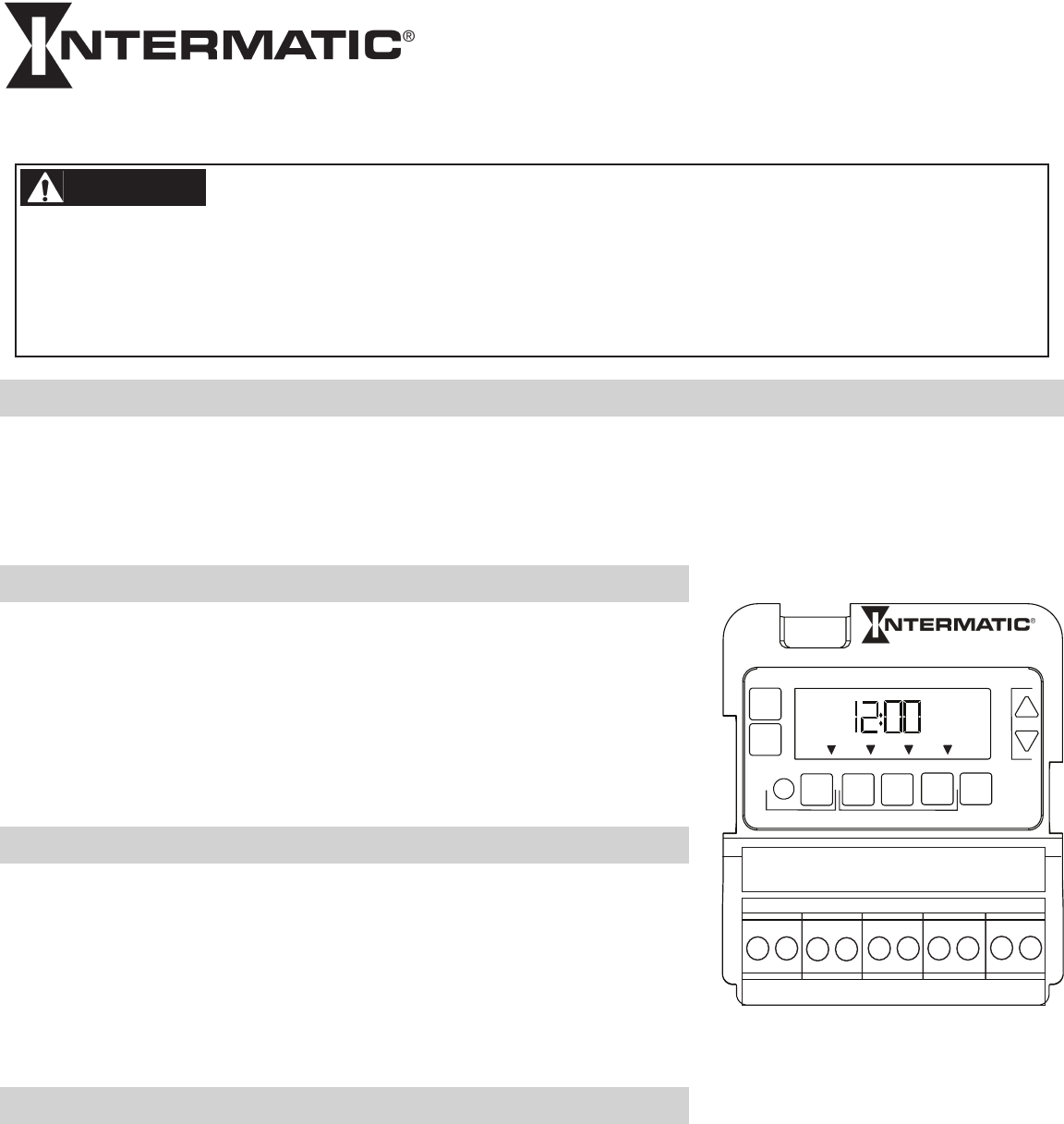 • Disconnectallpowerbeforeinstallingthetimeswitchorconnectedloads.