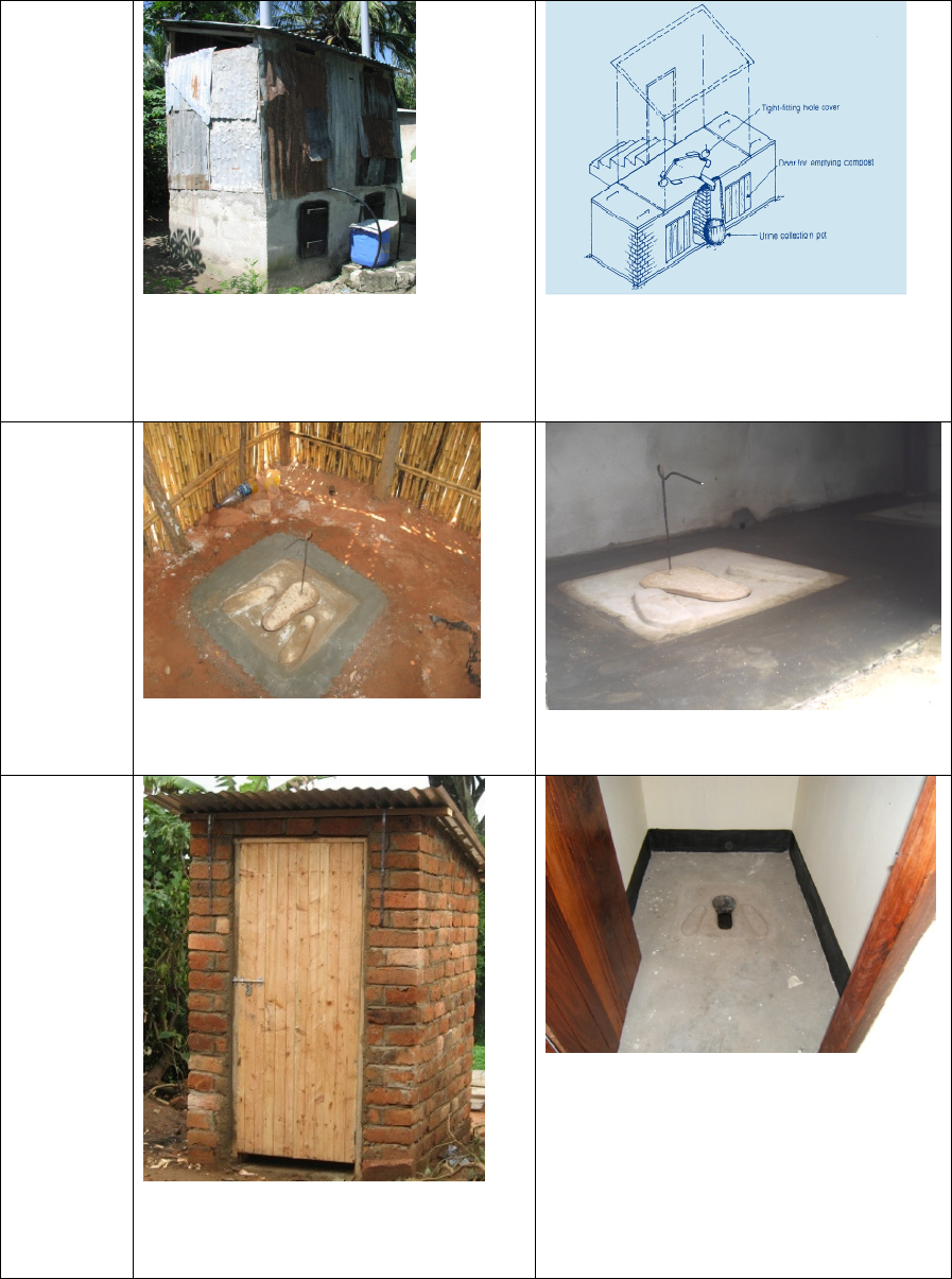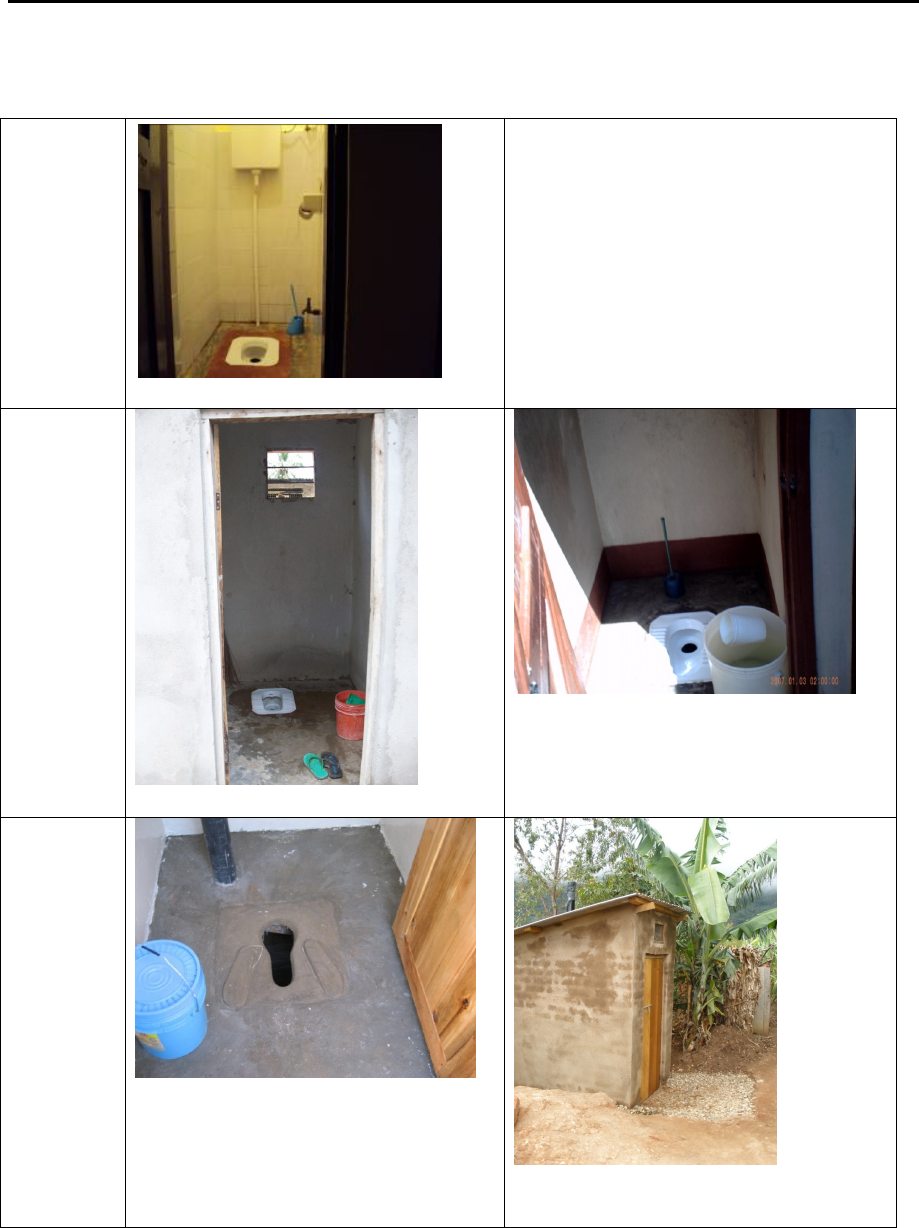 The following are photos of different types of toilet facilities that are referred to in the Housing, Water and