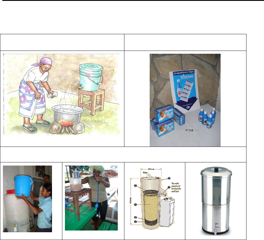The following are photos of different types of methods used to ensure water is safe to drink that are