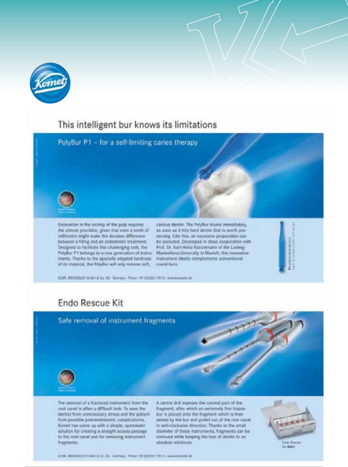 KOMET ASSORTED BURS, ENDO RESCUE KIT, SONIC TIPS, FINISHING KITS ........................ 53