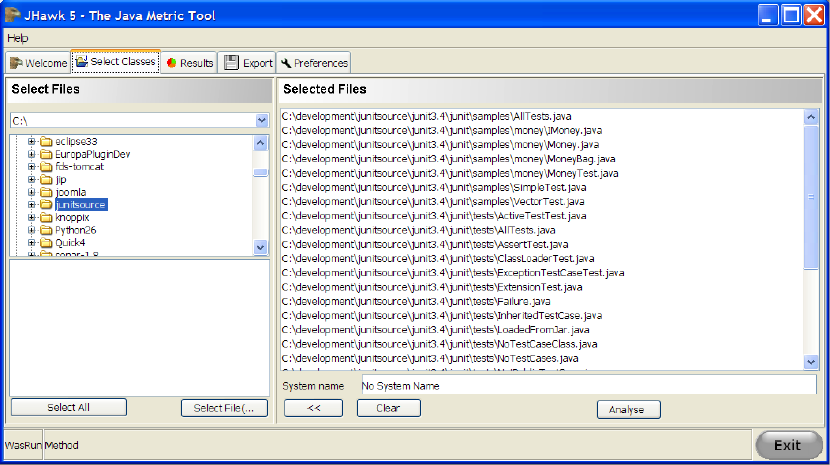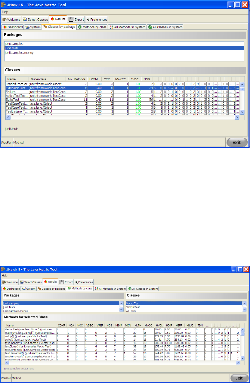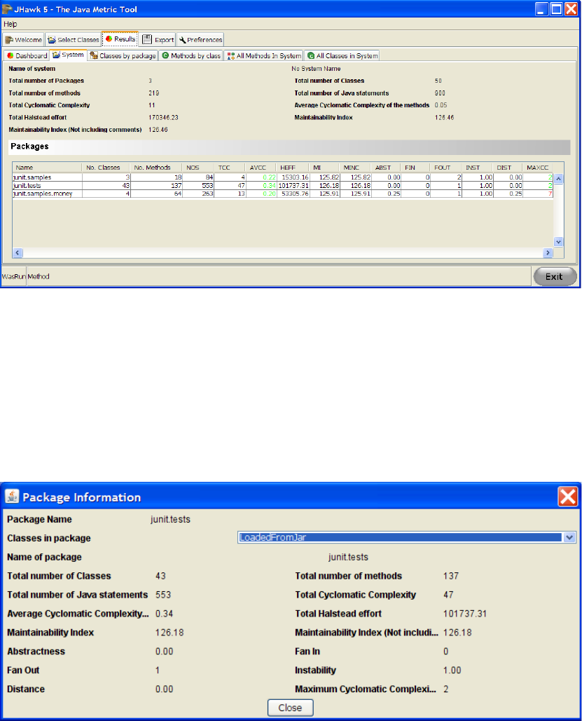 files exported by JHawk. This is an extremely powerful tool which is unique in the Java Software