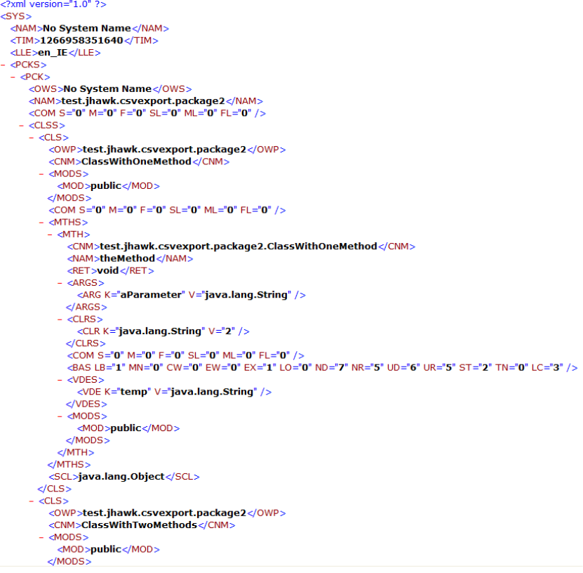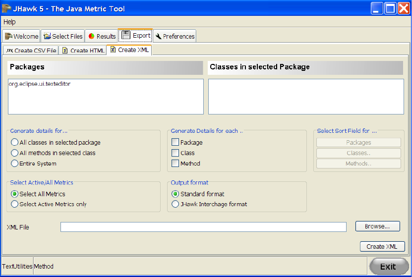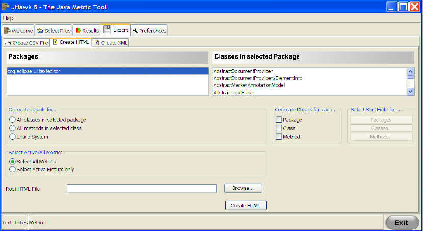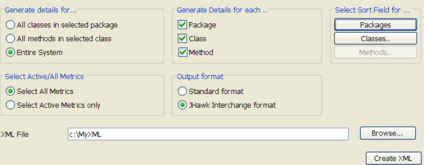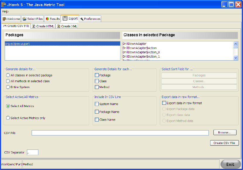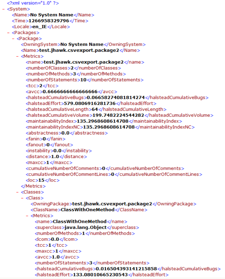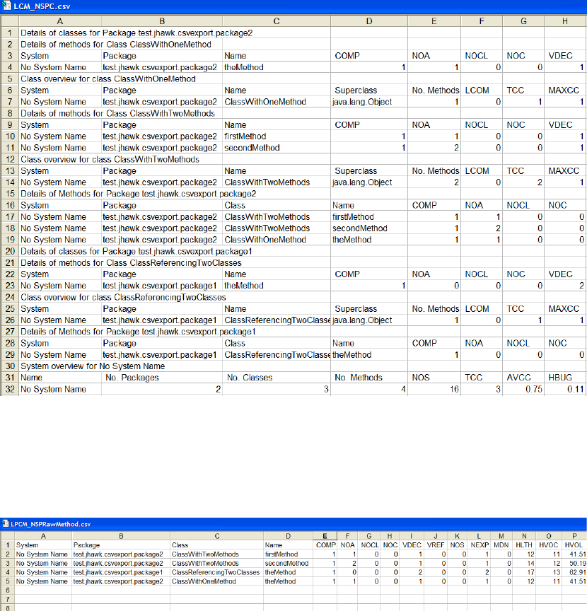 the metrics gathered by JHawk in CSV, HTML and XML format.