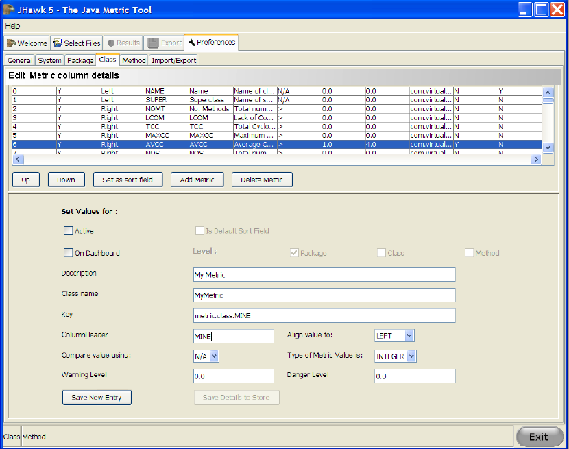 level . Before allowing you to save a new Metric entry to the preferences store, JHawk will check that
