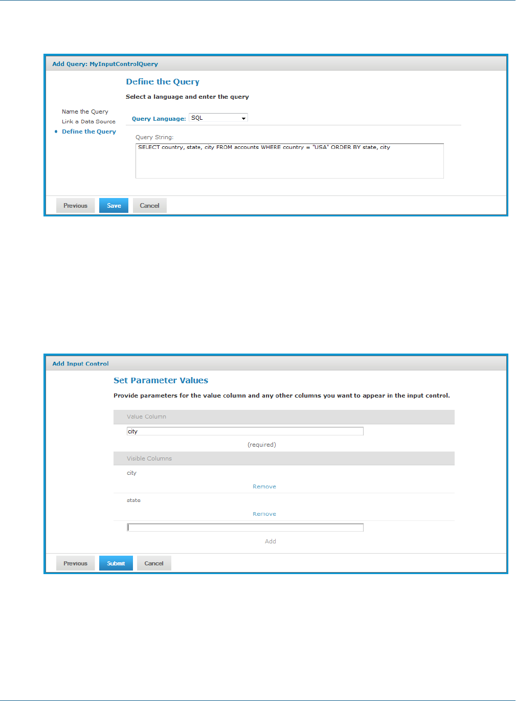 parameters for cascading input controls 88