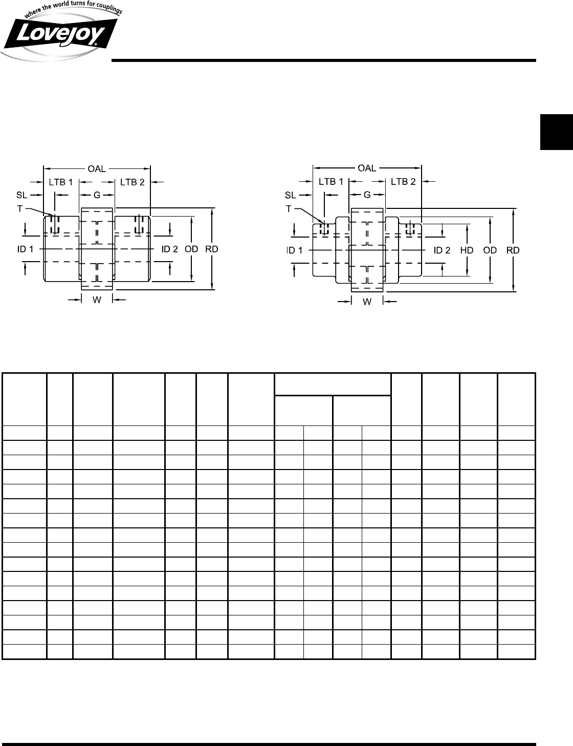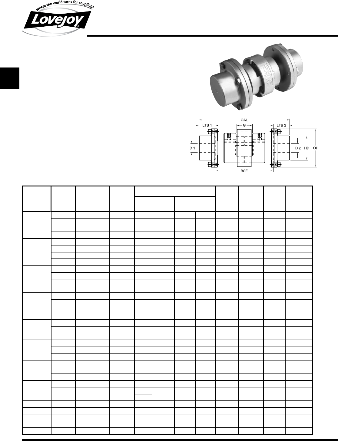 Utilizes the standard Lovejoy L and C Type hub design ■