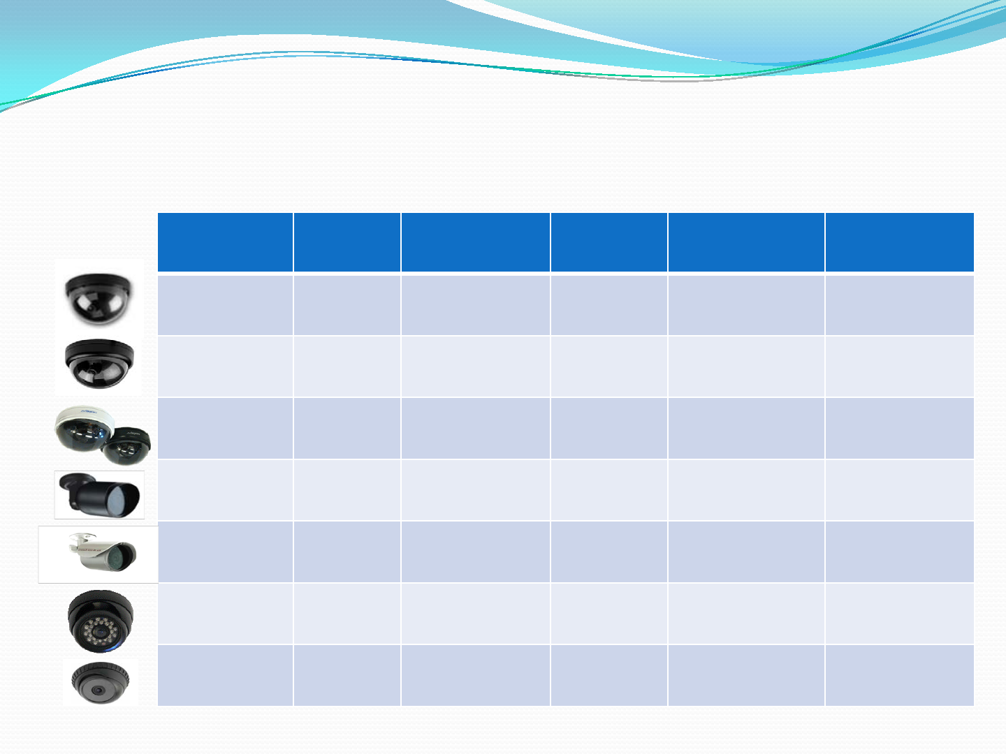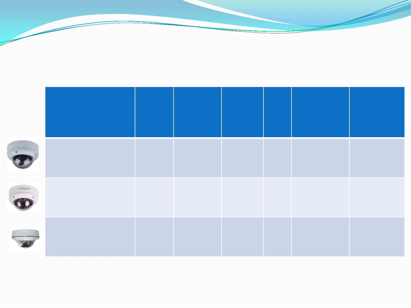 Model Name Fix Lens Vari-Focal IR LEDs High/ Med Res Weather/