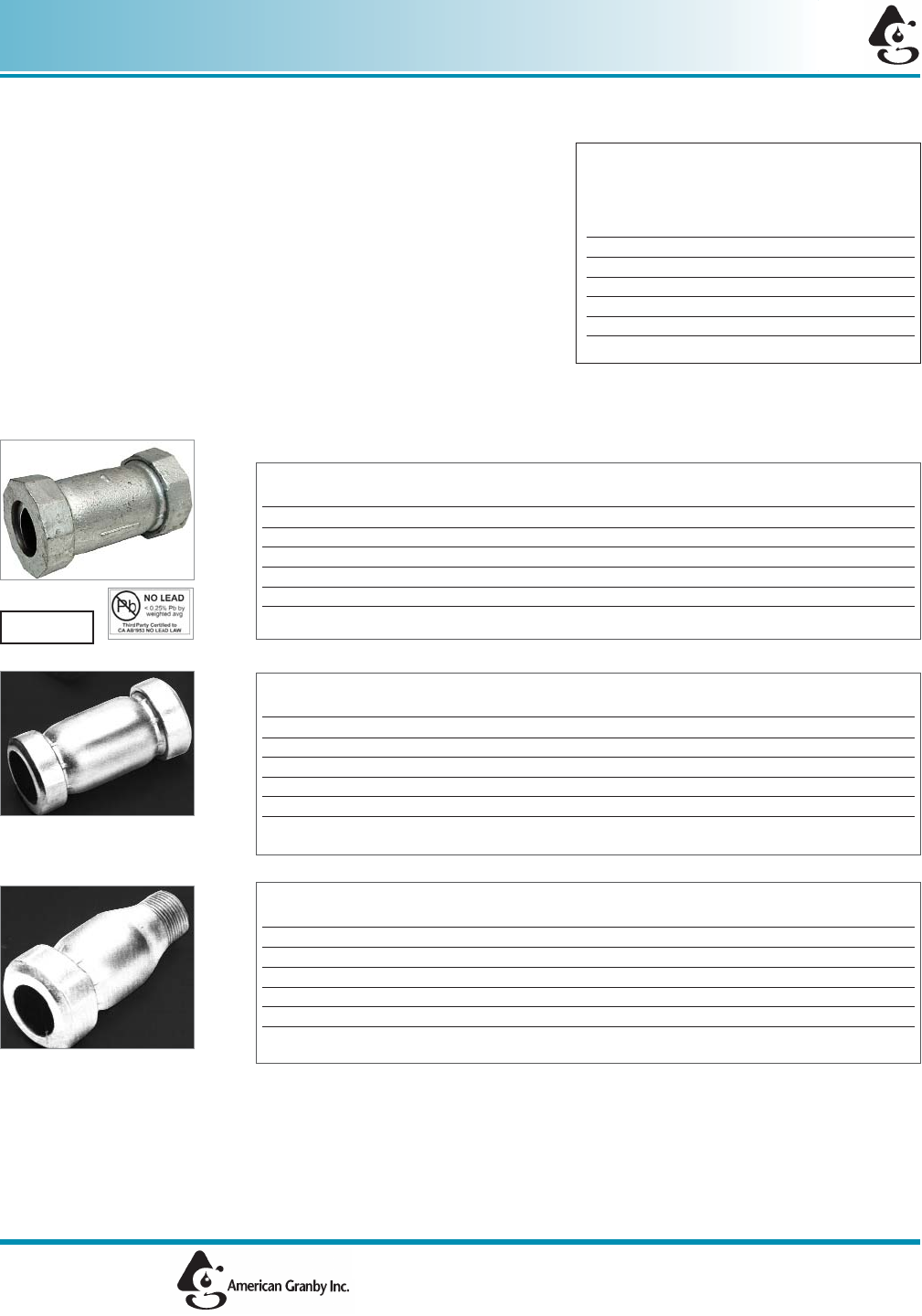 1” 1 1/2” 2.00 2.35 2.53 2.53 3.07 3.07 3.74 3.74 4.27 4.27 7.10 7.10 8.15 8.15 9.47 9.47