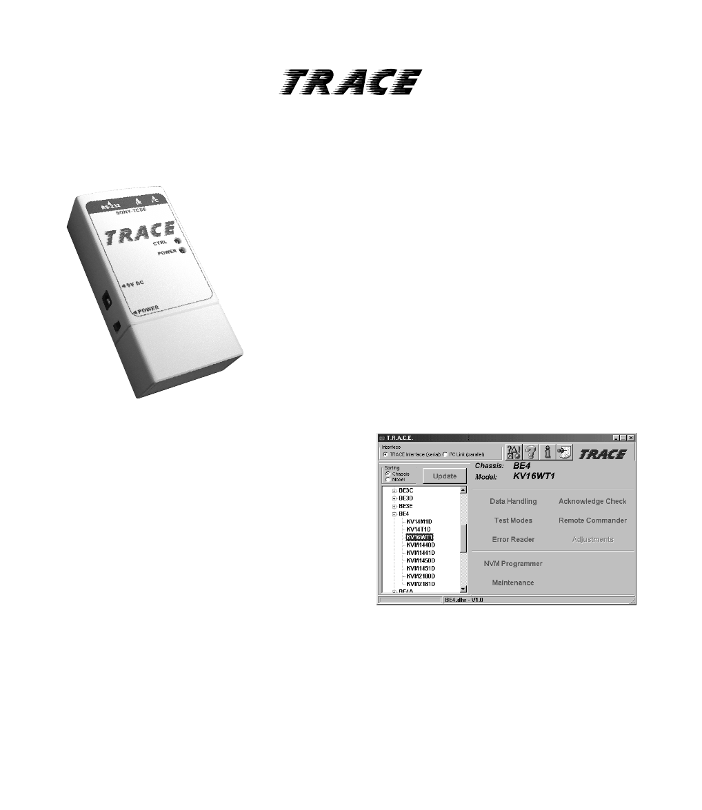 TV Data Handling software (9-948-340-50), but Error Reader and IR functions can only be accessed with the TRACE interface.