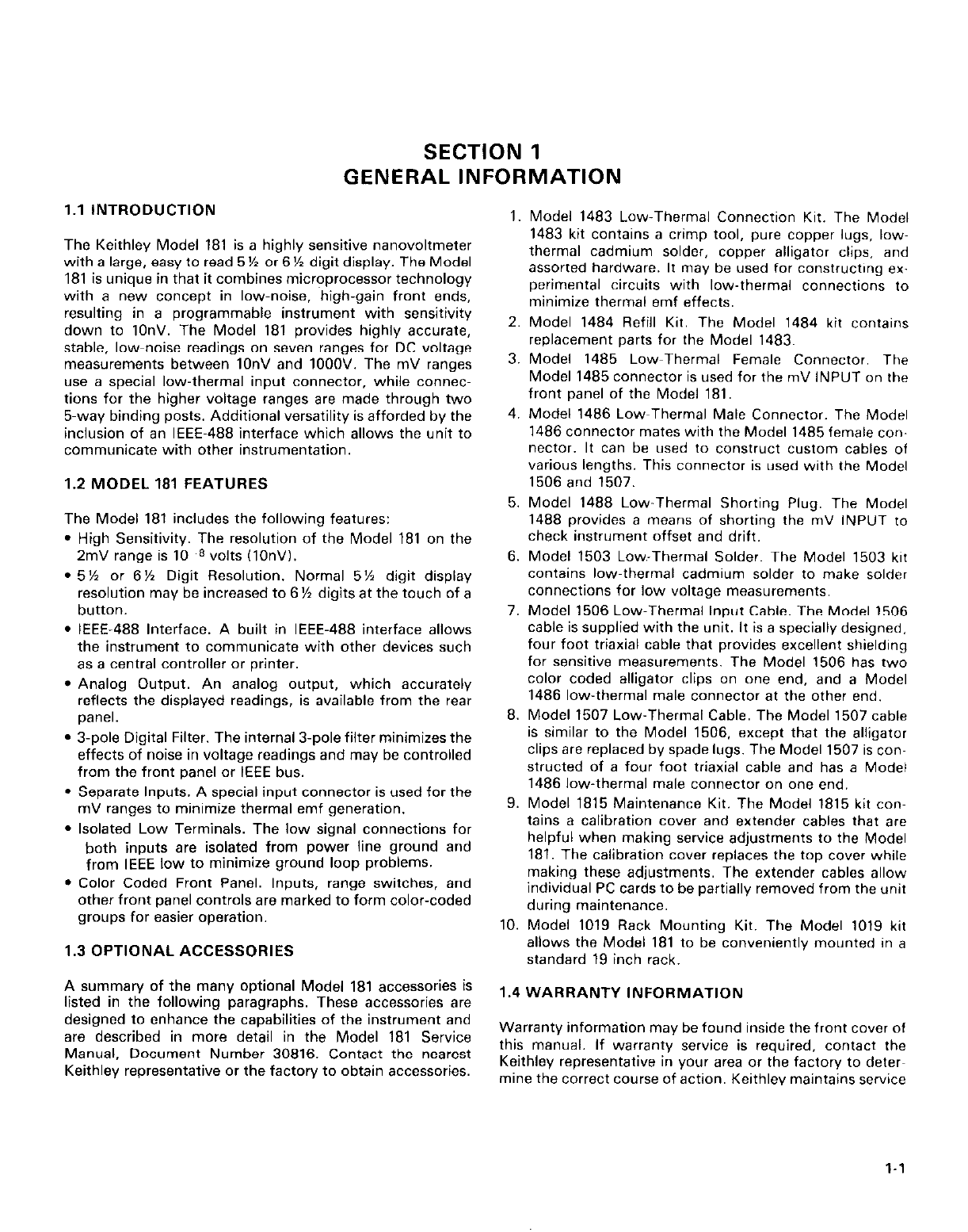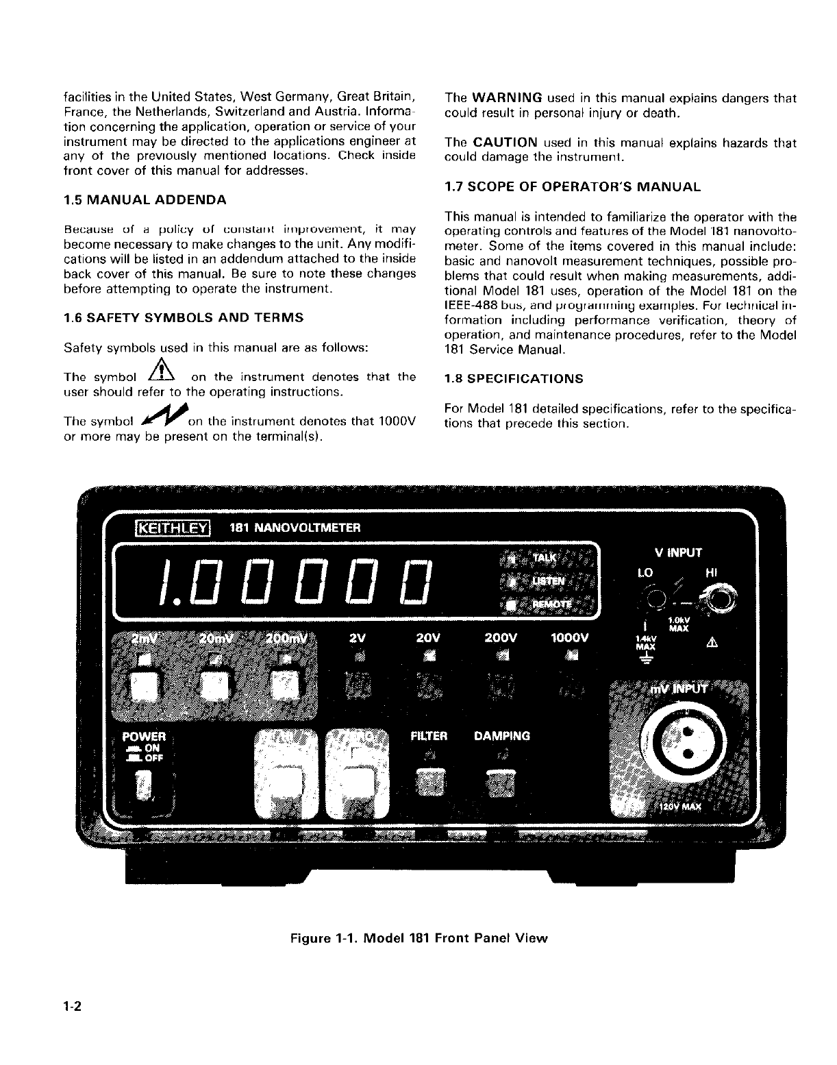 This addendum to the Model 181 Instruction Manual is being included in order to provide you with the latest in-