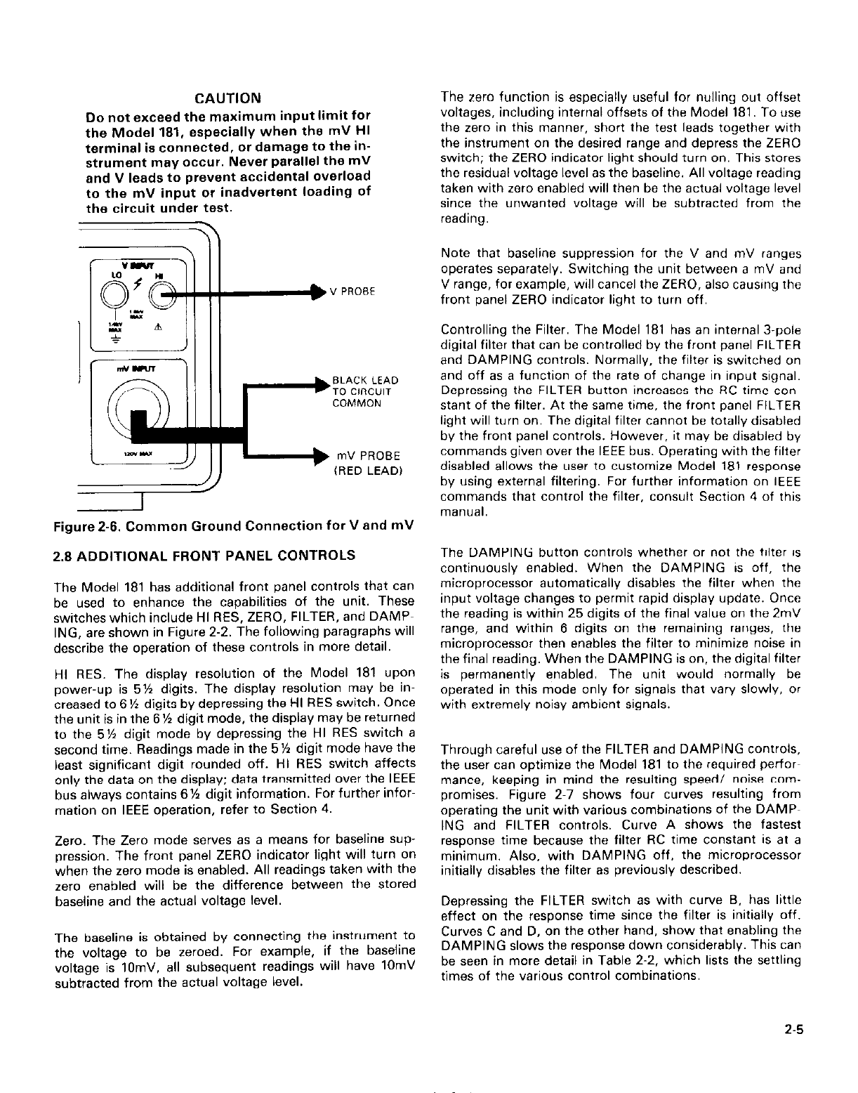 lNP”T CAPACITANCE: 5OOOpF on mV ranges.