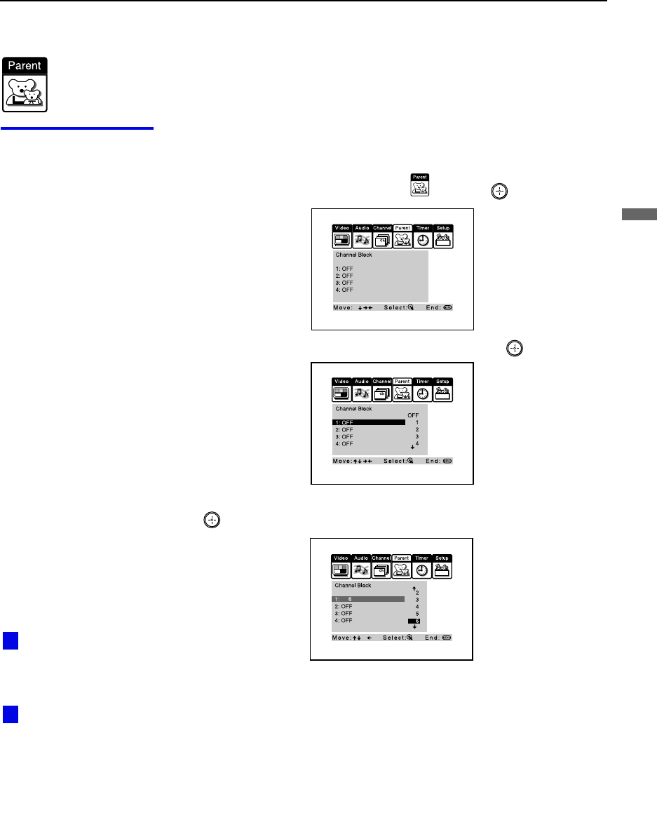 Channel Block Allows you to set up the TV to block up to 4 channels. See