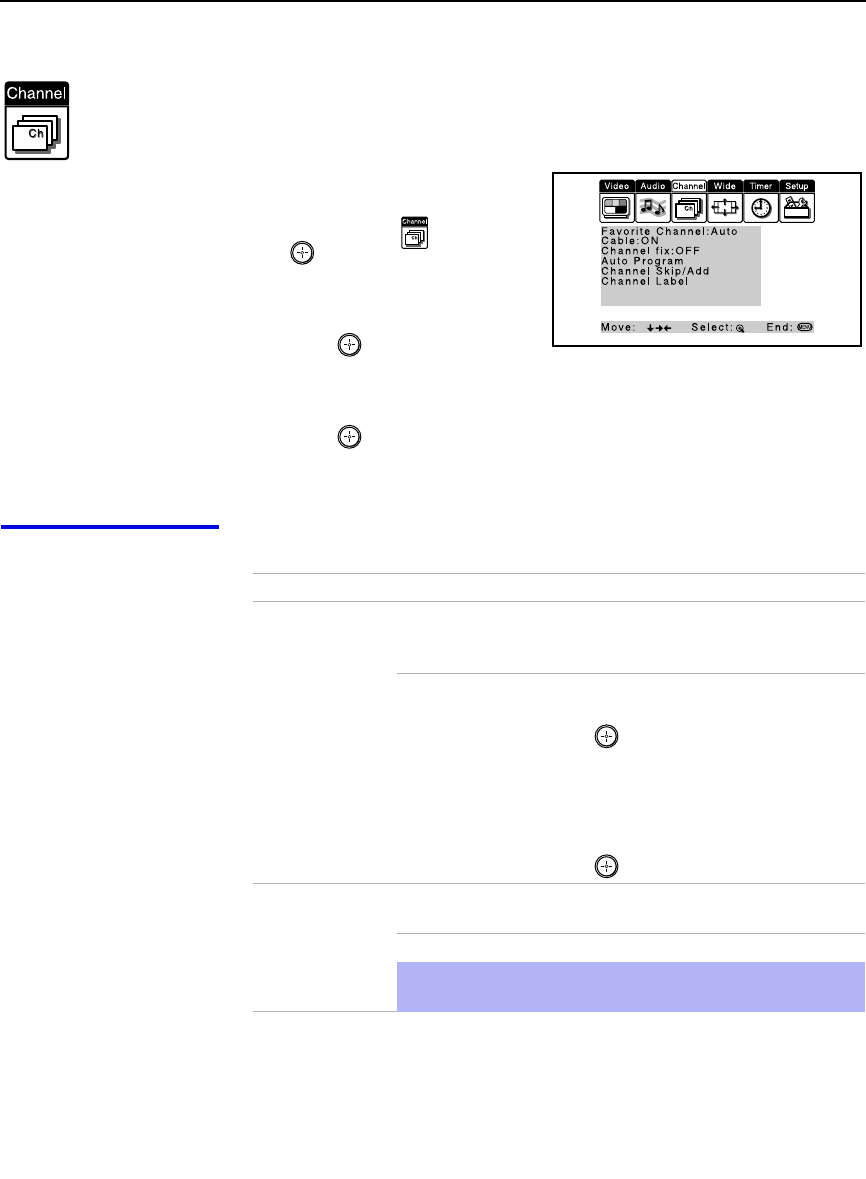 ❏Make sure Cable is set to ON in the Channel menu (see “Cable” on page 50).