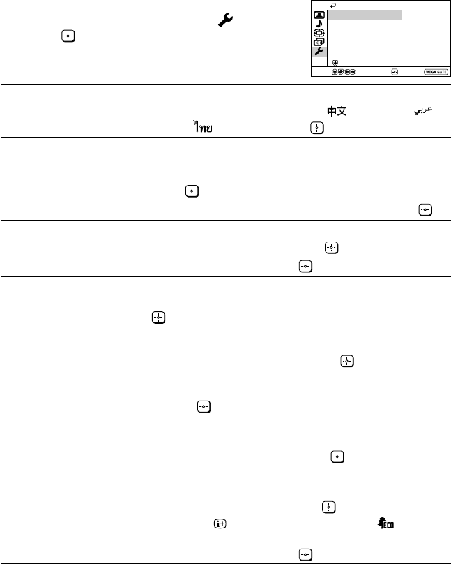 • “Wide Mode” is not selectable for HD (1080i, 720p) input signals. For HD (1080i,